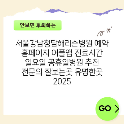 ✅ 서울 강남 청담 해리슨 병원의 전문 진료 시간과 예약 방법을 알아보세요.