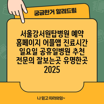 ✅ 서울강서원탑병원 예약 방법과 운영 시간에 대해 자세히 알아보세요.