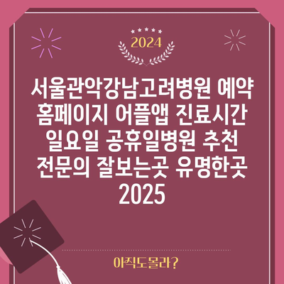 ✅ 서울관악강남고려병원의 진료시간과 예약 방법을 지금 바로 알아보세요!