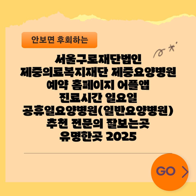 ✅ 제중요양병원의 진료시간과 예약 방법을 자세히 알아보세요!