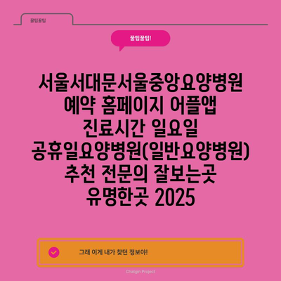 ✅ 서울서대문서울중앙요양병원의 진료시간과 예약 방법을 알아보세요.