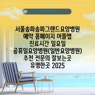 ✅ 서울송파그랜드요양병원의 진료시간과 예약 방법을 지금 바로 알아보세요!