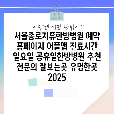 ✅ 서울종로치휴한방병원 예약 방법과 진료 시간에 대해 알아보세요.