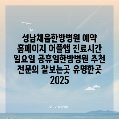 ✅ 성남채움한방병원의 진료시간과 예약 방법을 알아보세요.