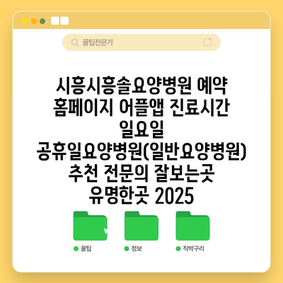 시흥시흥솔요양병원 예약 홈페이지 어플앱 진료시간 일요일 공휴일요양병원(일반요양병원) 추천 전문의 잘보는곳 유명한곳 2025