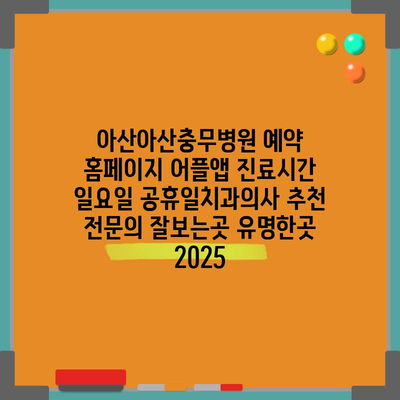 ✅ 아산충무병원에서 쉽고 빠르게 예약하는 방법을 알아보세요!