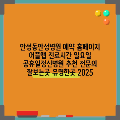 ✅ 안성동안성병원의 진료시간과 예약 방법을 자세히 알아보세요.