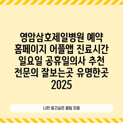 영암삼호제일병원 예약 홈페이지 어플앱 진료시간 일요일 공휴일의사 추천 전문의 잘보는곳 유명한곳 2025