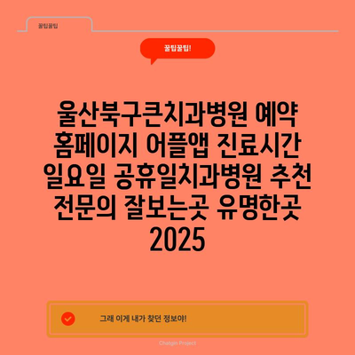 울산북구큰치과병원 예약 홈페이지 어플앱 진료시간 일요일 공휴일치과병원 추천 전문의 잘보는곳 유명한곳 2025