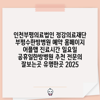 ✅ 부평수한방병원의 진료 시간과 예약 방법을 자세히 알아보세요.