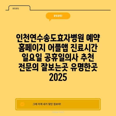 인천연수송도효자병원 예약 홈페이지 어플앱 진료시간 일요일 공휴일의사 추천 전문의 잘보는곳 유명한곳 2025