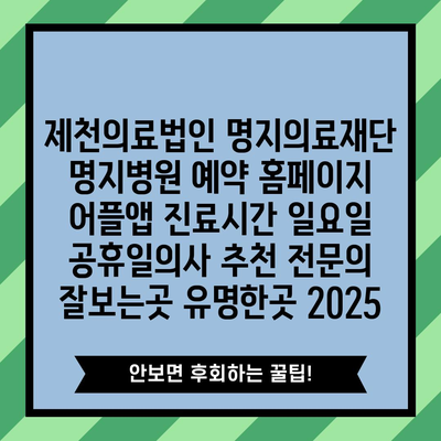 ✅ 제천의료법인 명지의료재단의 진료시간과 예약 방법을 확인해 보세요.