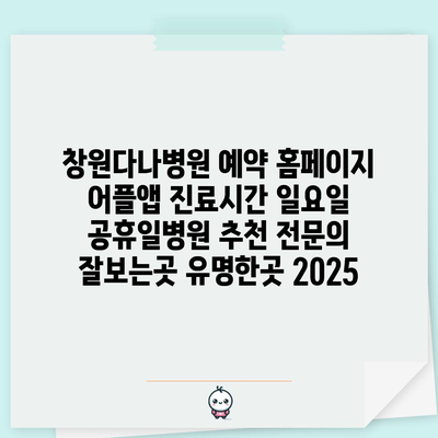 ✅ 창원다나병원 예약 앱의 사용법을 지금 바로 알아보세요!