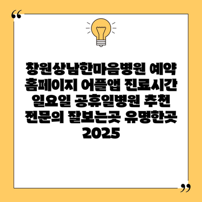 ✅ 창원상남한마음병원의 진료시간과 예약 방법을 지금 바로 알아보세요!
