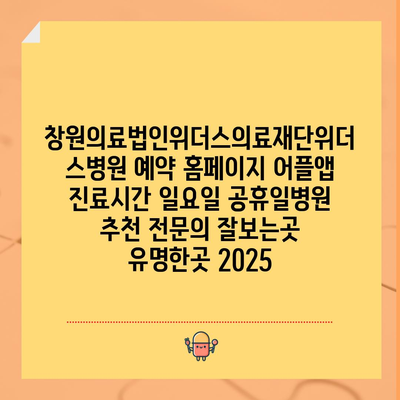 창원의료법인위더스의료재단위더스병원 예약 홈페이지 어플앱 진료시간 일요일 공휴일병원 추천 전문의 잘보는곳 유명한곳 2025