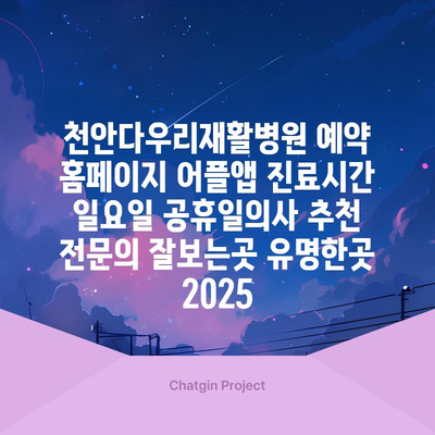 ✅ 천안다우리재활병원의 진료시간과 예약 방법을 지금 바로 알아보세요.
