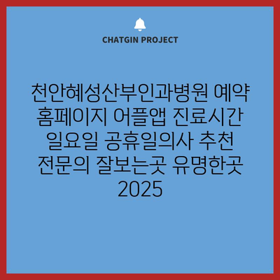 천안혜성산부인과병원 예약 홈페이지 어플앱 진료시간 일요일 공휴일의사 추천 전문의 잘보는곳 유명한곳 2025