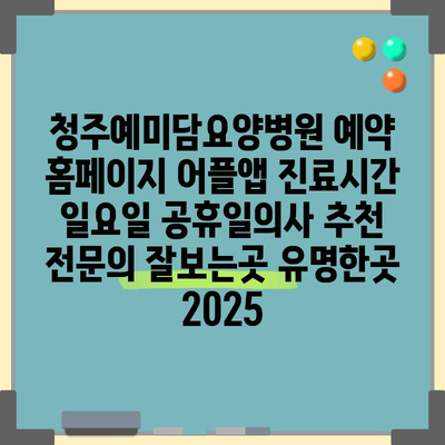 ✅ 청주예미담요양병원의 진료 시간과 예약 방법을 지금 알아보세요.