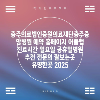 ✅ 충주중앙병원의 진료시간과 예약 방법을 지금 바로 확인해 보세요!