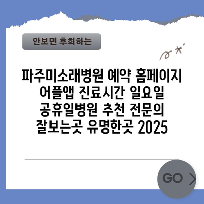 ✅ 파주미소래병원의 진료시간과 예약 방법을 자세히 알아보세요.