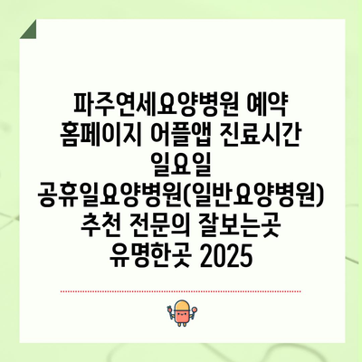 파주연세요양병원 예약 방법과 절차 공지
