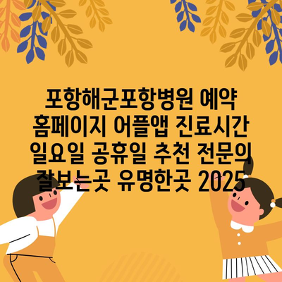 ✅ 포항해군포항병원의 진료시간과 예약 방법을 알아보세요!