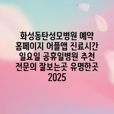 ✅ 화성동탄성모병원의 진료시간과 예약 방법을 알아보세요.
