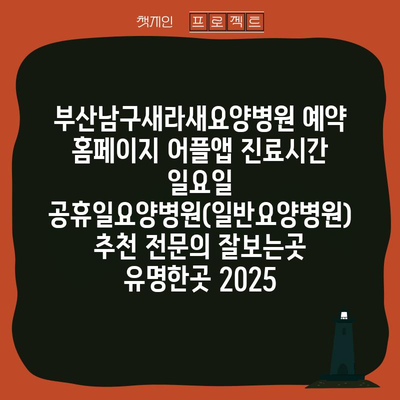 부산남구새라새요양병원은 예정된 진료와 환자 중심의 의료 서비스를 제공하는 요양병원입니다. 해당 병원은 예약 홈페이지와 어플리케이션을 통해 빠르고 간편하게 진료 예약을 할 …