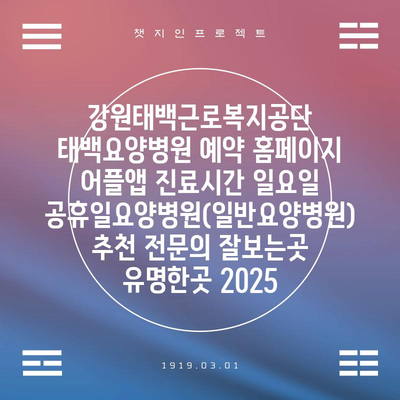 강원태백근로복지공단 태백요양병원은 현대적인 시설과 전문 인력을 갖춘 요양병원입니다. 예약은 홈페이지나 어플 앱을 통해 간편하게 할 수 있으며, 진료시간 또한 매우 …