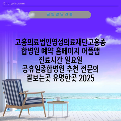 고흥의료법인영성의료재단고흥종합병원 예약 홈페이지 어플앱 진료시간 일요일 공휴일종합병원 추천 전문의 잘보는곳 유명한곳 2025