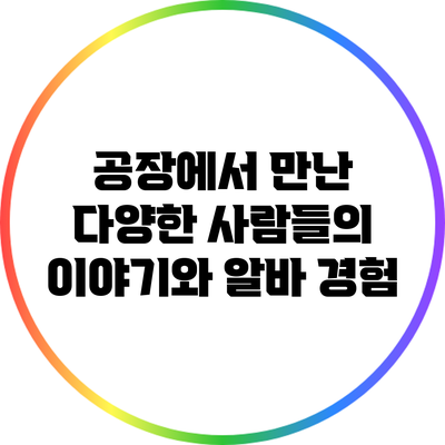 공장에서 만난 다양한 사람들의 이야기와 알바 경험 2024년 12월 30일 by 전문기자 공장에서 만난 다양한 사람들의 이야기와 알바 경험 공장은 단순한 일터 이상의 의미를 갖고 있습니다. 모든 사람들과의 만남이 새로운 경험으로 가득한 … Read more