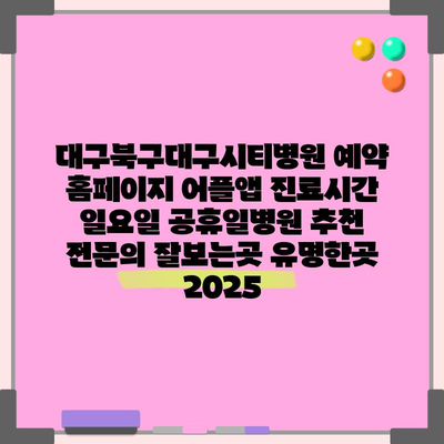 대구북구대구시티병원 예약 홈페이지 어플앱 진료시간 일요일 공휴일병원 추천 전문의 잘보는곳 유명한곳 2025 2024년 11월 15일 by 전문기자 대구북구대구시티병원은 예약 홈페이지와 어플앱을 통해 진료를 보다 편리하게 받을 수 있는 곳입니다. 이 병원은 월~토요일은 물론, 일요일과 공휴일에도 진료를 알려드려 … Read more
