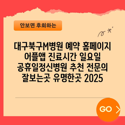 대구북구M병원 예약 홈페이지 어플앱 진료시간 일요일 공휴일정신병원 추천 전문의 잘보는곳 유명한곳 2025 2024년 11월 15일 by 전문기자 대구북구M병원 예약 홈페이지는 환자들이 보다 편리하게 진료를 받을 수 있도록 다양한 기능을 알려알려드리겠습니다. 어플리케이션을 통해 언제 어디서나 쉽게 예약을 할 … Read more