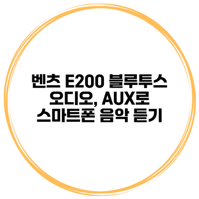 벤츠 E200 블루투스 오디오, AUX로 스마트폰 음악 듣기 2025년 03월 05일 by 전문기자 벤츠 E200에서 블루투스 오디오와 AUX를 통해 스마트폰 음악을 듣는 것은 차량의 고급스러운 오디오 시스템을 최대한 활용하는 방법이에요. 어떤 방법으로든 스마트폰 … Read more
