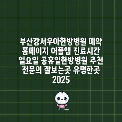 부산강서우아한방병원 예약 홈페이지 어플앱 진료시간 일요일 공휴일한방병원 추천 전문의 잘보는곳 유명한곳 2025