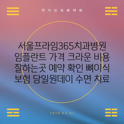 서울프라임365치과병원 임플란트 가격 크라운 비용 잘하는곳 예약 확인 뼈이식 보험 당일원데이 수면 치료