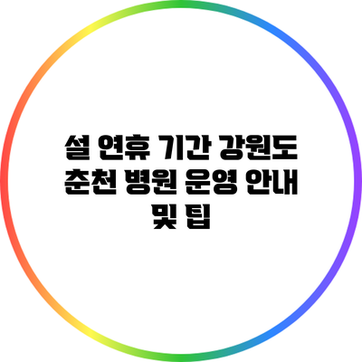 설 연휴 기간 강원도 춘천 병원 운영 안내 및 팁 2025년 02월 08일 by 전문기자 설 연휴 기간, 고향을 찾거나 여행을 떠나는 사람들이 많아집니다. 하지만 다양한 이유로 병원이 필요한 상황이 생기기도 해요. 강원도 춘천의 병원 … Read more
