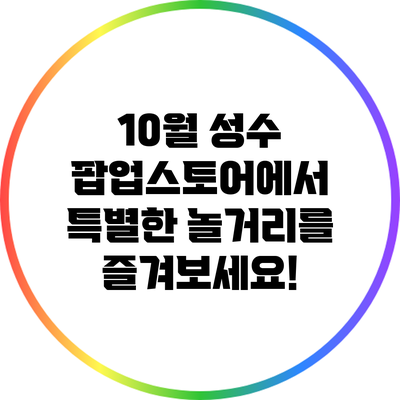 10월 성수 팝업스토어에서 특별한 놀거리를 즐겨보세요! 2024년 12월 01일 by 전문기자 10월 성수 팝업스토어에서 특별한 놀거리를 즐겨보세요! 성수동의 팝업스토어는 매번 새롭고 특별한 경험을 알려알려드리겠습니다. 10월에 열리는 성수 팝업스토어에서는 다양한 문화 행사와 … Read more