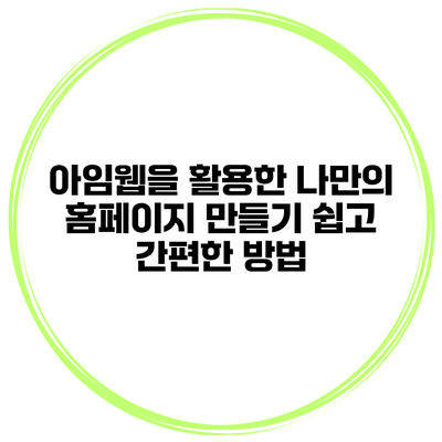 아임웹을 활용한 나만의 홈페이지 만들기: 쉽고 간편한 방법