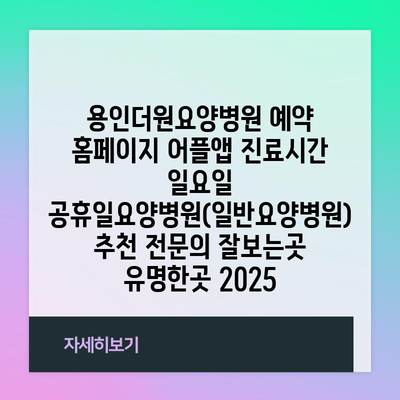 용인더원요양병원 예약 홈페이지 어플앱 진료시간 일요일 공휴일요양병원(일반요양병원) 추천 전문의 잘보는곳 유명한곳 2025