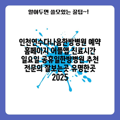 인천연수다나음한방병원 예약 홈페이지 어플앱 진료시간 일요일 공휴일한방병원 추천 전문의 잘보는곳 유명한곳 2025