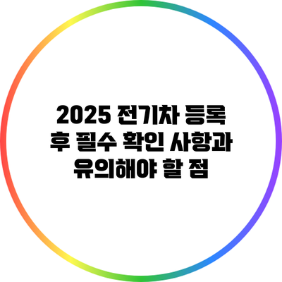 2025 전기차 등록 후 필수 확인 사항과 유의해야 할 점 2025년 01월 22일 by 전문기자 ⚠️ 이 글은 AI로 생성된 글입니다. ⚠️ 전기차가 빠르게 대중화됨에 따라, 새로운 전기차 소유자들에게는 등록 후 주의해야 할 사항이 많아요. … Read more