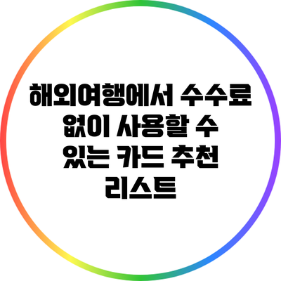 해외여행에서 수수료 없이 사용할 수 있는 카드 추천 리스트 2024년 12월 22일 by 전문기자 해외여행에서 수수료 없이 사용할 수 있는 카드 추천 리스트 해외 여행을 계획할 때, 금전적인 부분은 빼놓을 수 없는 중요한 요소죠. … Read more