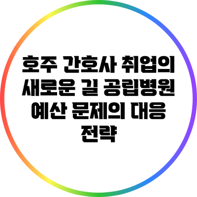 호주 간호사 취업의 새로운 길: 공립병원 예산 문제의 대응 전략 2024년 12월 30일 by 전문기자 호주의 공공 보건 시스템에서 간호사들은 중요한 역할을 담당하고 있는데, 최근 예산 문제로 인해 그들의 취업 경로가 변화하고 있습니다. 이러한 변화의 … Read more